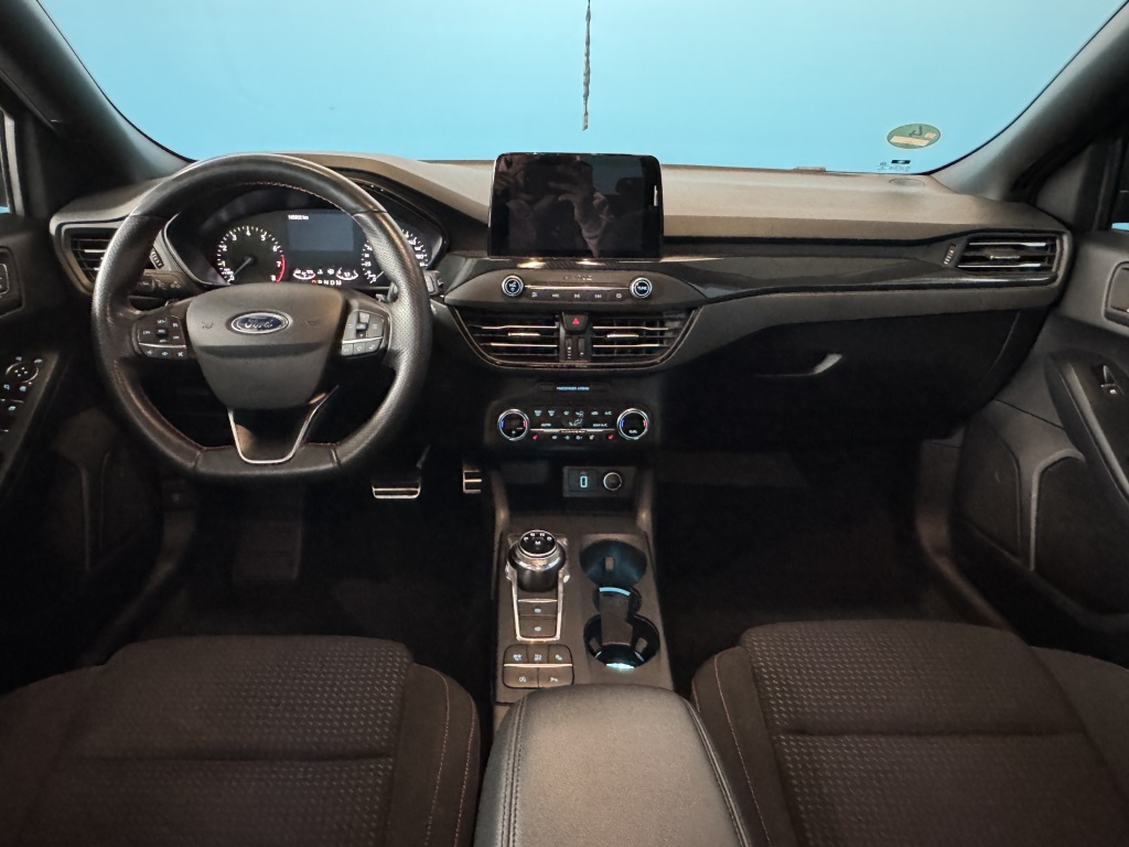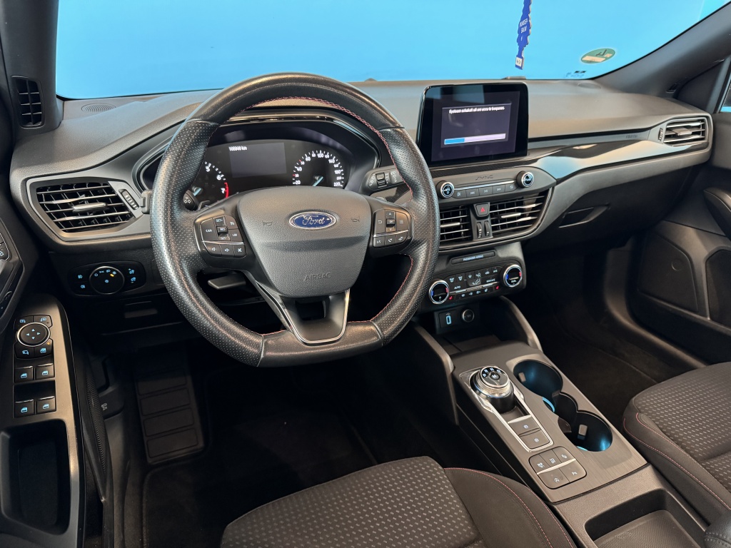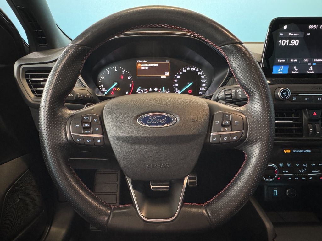 Van uw nieuwe auto verlangt u rijplezier, maar ook optimaal comfort en veiligheid. Daarom is de Ford Focus Wagon de auto die u zoekt. De aandrijving van deze Ford wordt verzorgd door een driecilinder motor en een automatische transmissie. Voor het pittige uiterlijk én goed gesteund zitten zorgen de sportstoelen. Bij de rijke uitrusting horen ook 16 inch lichtmetalen velgen, adaptieve mistlampen, aluminium dakrailing, dakspoiler, elektrisch inklapbare buitenspiegels en in delen neerklapbare achterbank.