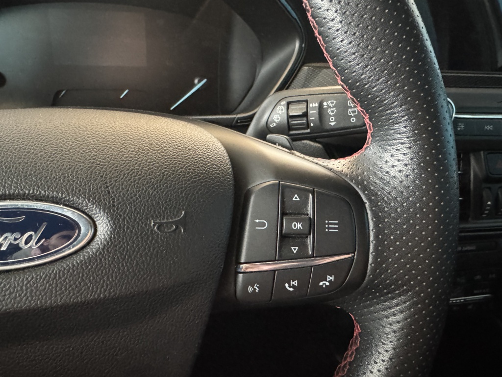Net als een smartphone of een slimme speaker kunt u deze auto bedienen met stemcommando's. Deze Ford Focus Wagon is 'connected'. Belangrijke functies worden permanent gemeten en zijn uit te lezen via een speciale app, ook op afstand. Waarheen gaat de reis? Het navigatiesysteem brengt u trefzeker ter plekke! Bij het wisselen van rijbaan kan een dode hoek ontstaan waardoor achterliggers te dichtbij kunnen komen. De achteropkomend verkeer waarschuwing geeft in dat geval automatisch een signaal. De geïntegreerde WiFi-hotspot van deze auto is ideaal voor werk en gezin. Via de draadloze internetverbinding kunt u media streamen of internetsurfen. De uitrusting van deze auto is met WIFI-hotspot, automatische airconditioning, parkeersensoren achter, regensensor, cruise control en keyless entry behoorlijk compleet.