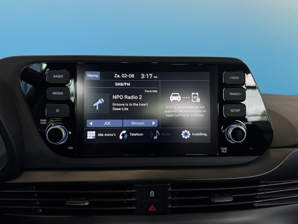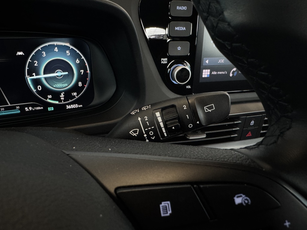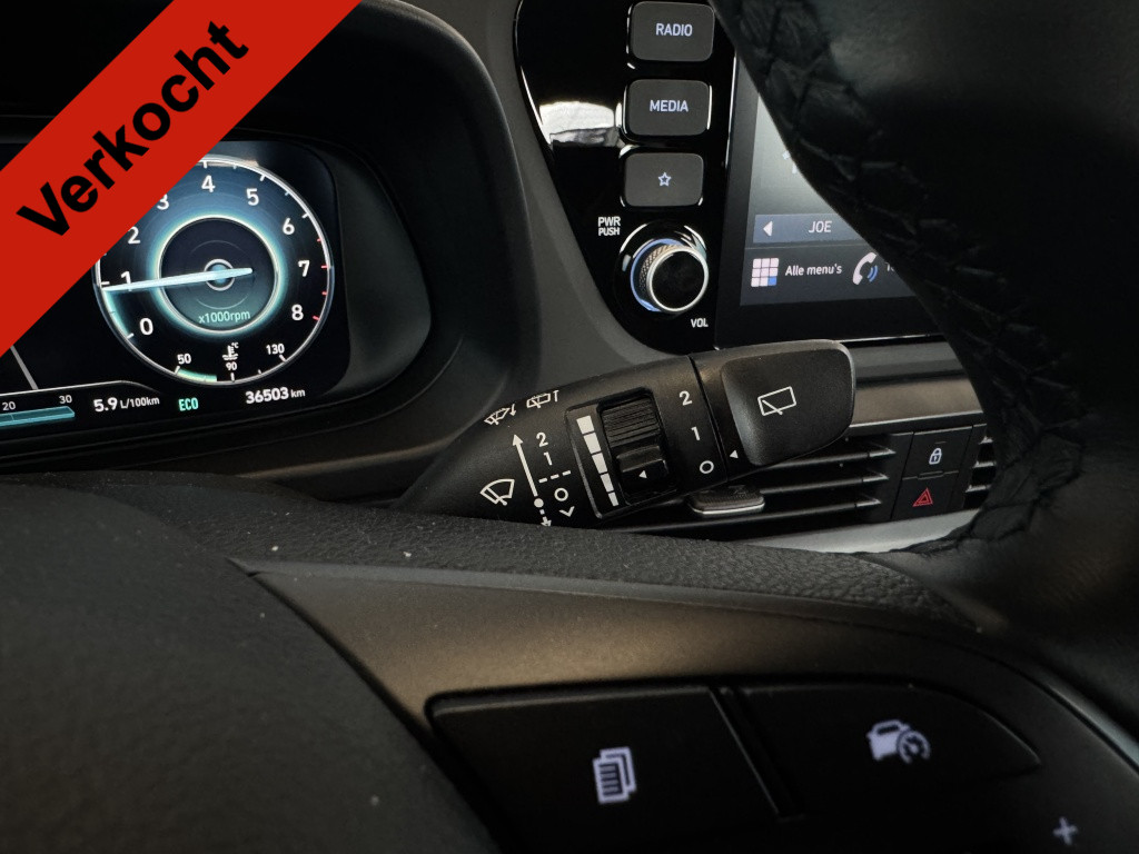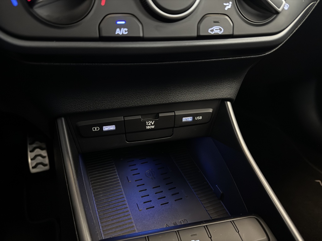 Inparkeren? Met de achteruitrijcamera heeft u er geen omkijken meer naar! Spraaksturing is onderdeel van de uitrusting van deze auto. Met uw stem kunt u de belangrijkste voertuigfuncties bedienen. Appen met uw auto? Geen probleem. U kunt van overal contact opnemen, de functies controleren en activeren. U bedient 'm met remote services. Door de draadloze oplaadmogelijkheid voor telefoons bent u verlost van kabels en snoertjes. Het opladen gaat simpel door de smartphone in de speciale houder te plaatsen. De DAB-ontvanger zorgt voor een ruime keuze uit digitale radiozenders en een kristalheldere geluidsweergave. Deze Hyundai is voorzien van cruise control, airconditioning, automatisch dimmende spiegels, lederen stuur, bagage afdekhoes en lederen versnellingspook.