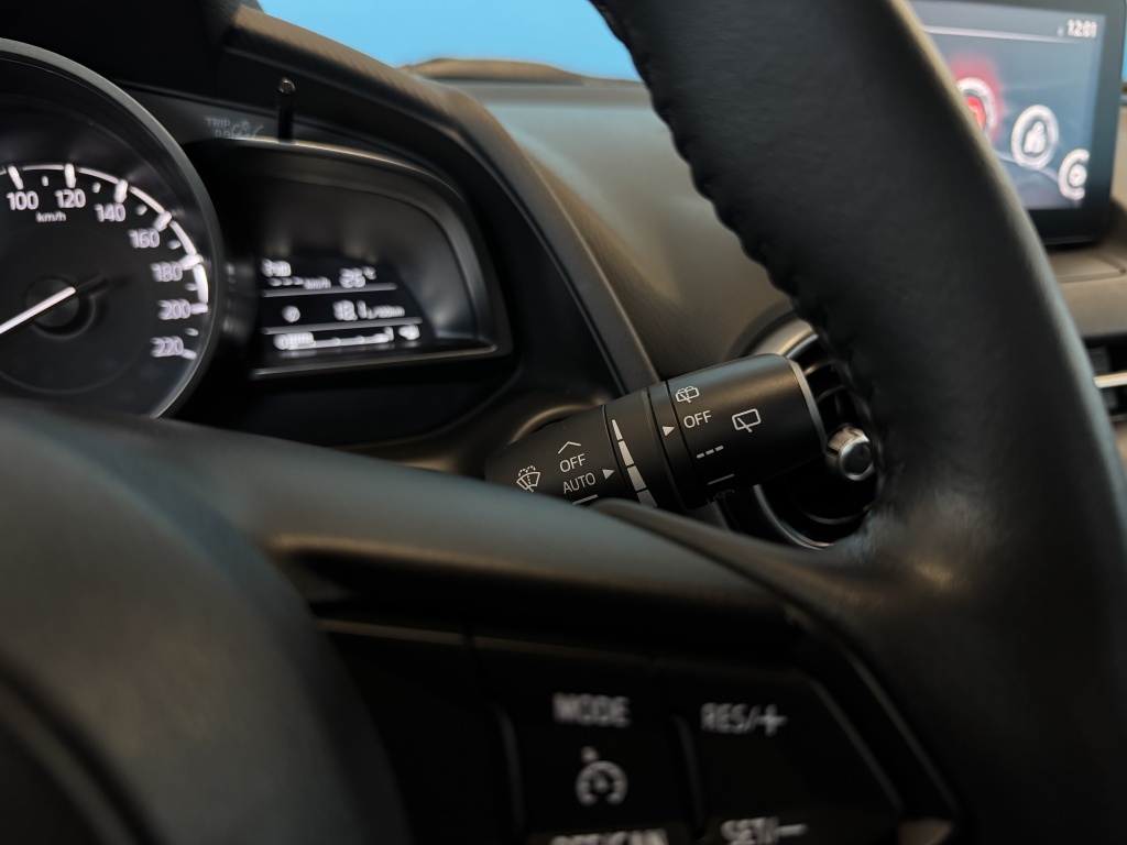 De kans op een kop-staart botsing wordt sterk gereduceerd door het systeem van achteropkomend verkeer waarschuwing. Dankzij electronic climate control is het interieur behaaglijk warm of verfrissend koel. De parkeersensoren registreren alles. Ook dat ene paaltje dat net buiten uw gezichtsveld valt. Het luxeniveau in deze Mazda is niet alleen gericht op comfort, maar ook op uw veiligheid. Tal van sensoren helpen u om de omgeving in de gaten te houden. De automatisch inschakelbare verlichting zorgt dat automatisch de verlichting wordt ingeschakeld als het donker wordt, wat bijvoorbeeld in tunnels erg handig is. En de regensensor zet de ruitenwissers aan zonder dat u eraan hoeft te denken. Met ingeschakelde cruise control zit u ontspannen achter het stuur. U bent in deze Mazda ook voorzien van DAB ontvangst, automatisch dimmende spiegels, boordcomputer en verstelbaar stuur.