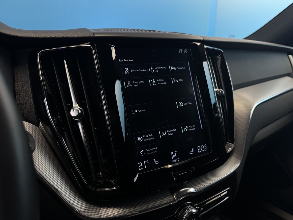 In de Volvo XC60 heeft uw veiligheid en die van uw omgeving prioriteit. Dat de auto steeds meer taken van de bestuurder overneemt, merkt u bijvoorbeeld aan het systeem voor verkeersbord-detectie in deze auto. Deze Volvo XC60 is ook behulpzaam als het gaat om een rechte koers. Het Lane-keeping systeem signaleert en corrigeert als u onbedoeld de rijstrooklijnen dreigt te overschrijden. Mindert een voorligger onverwachts te veel vaart, dan komt de forward collision warning in actie en waarschuwt meteen. De veiligheid van deze auto wordt verder verhoogd door dodehoekdetectie, hill hold functie, brake assist, vermoeidheidsherkenning en bandenspanningcontrolesysteem.