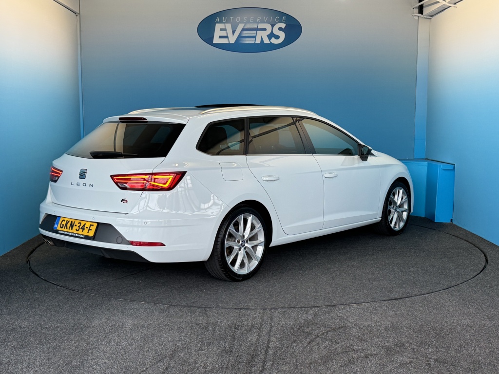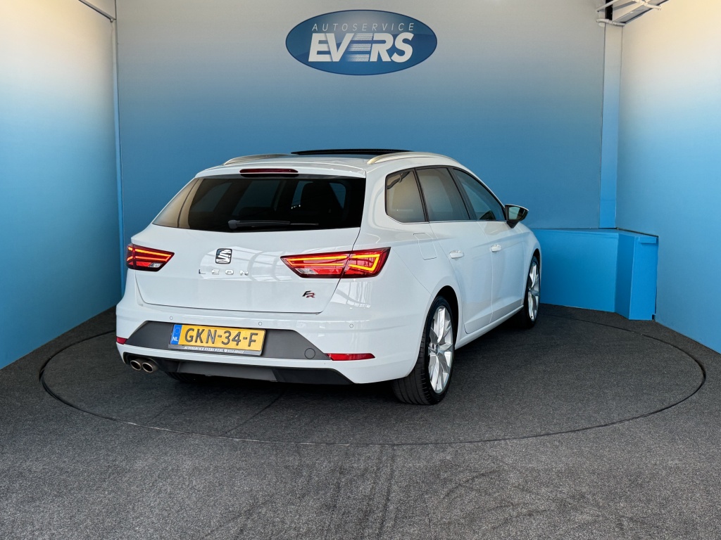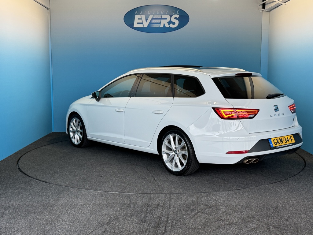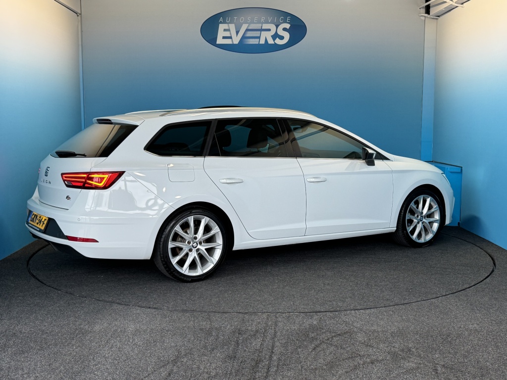 Kilometer na kilometer, bocht na bocht levert deze Seat Leon ST de beste rijprestaties. De aandrijving van deze Seat wordt verzorgd door een viercilinder motor en een automatische transmissie. Kent u het gevoel van een elektrisch bediend glazen panorama dak? Wij zeggen: licht, lucht en ruimte. En dan hebben we het nog niet eens over de luxe sensatie van het lederen interieur. Een beetje luxe is nooit weg, toch? Vandaar de stoelverwarming! U wordt in deze auto ook getrakteerd op 18 inch lichtmetalen velgen, LED koplampen, sportonderstel, donker getint glas achter, in delen neerklapbare achterbank en LED-achterlichten.
