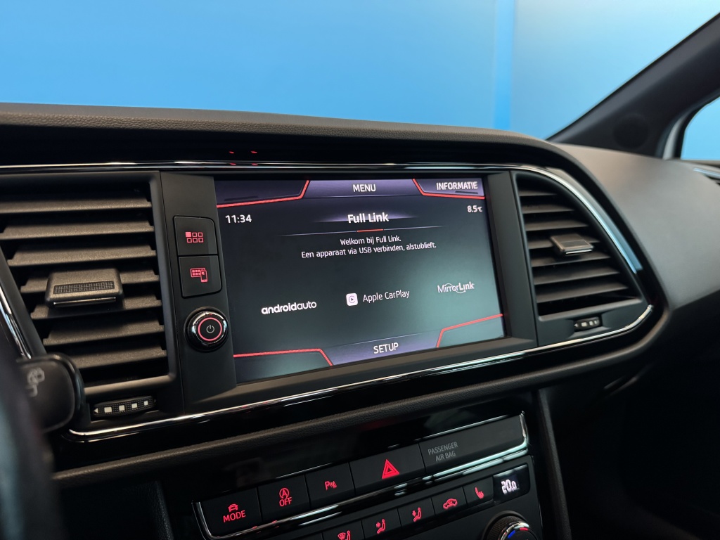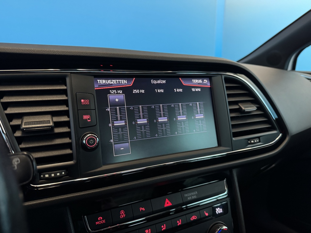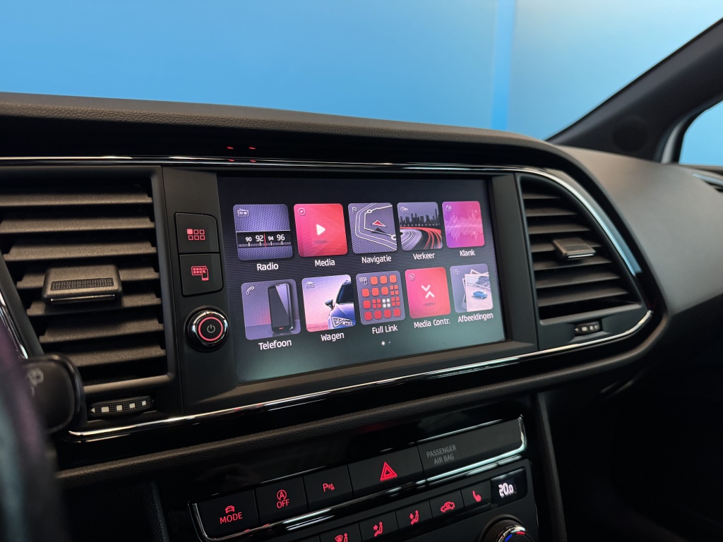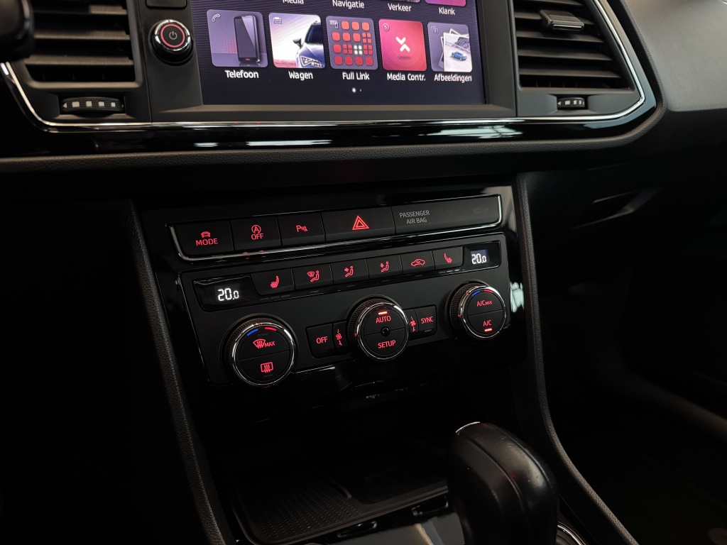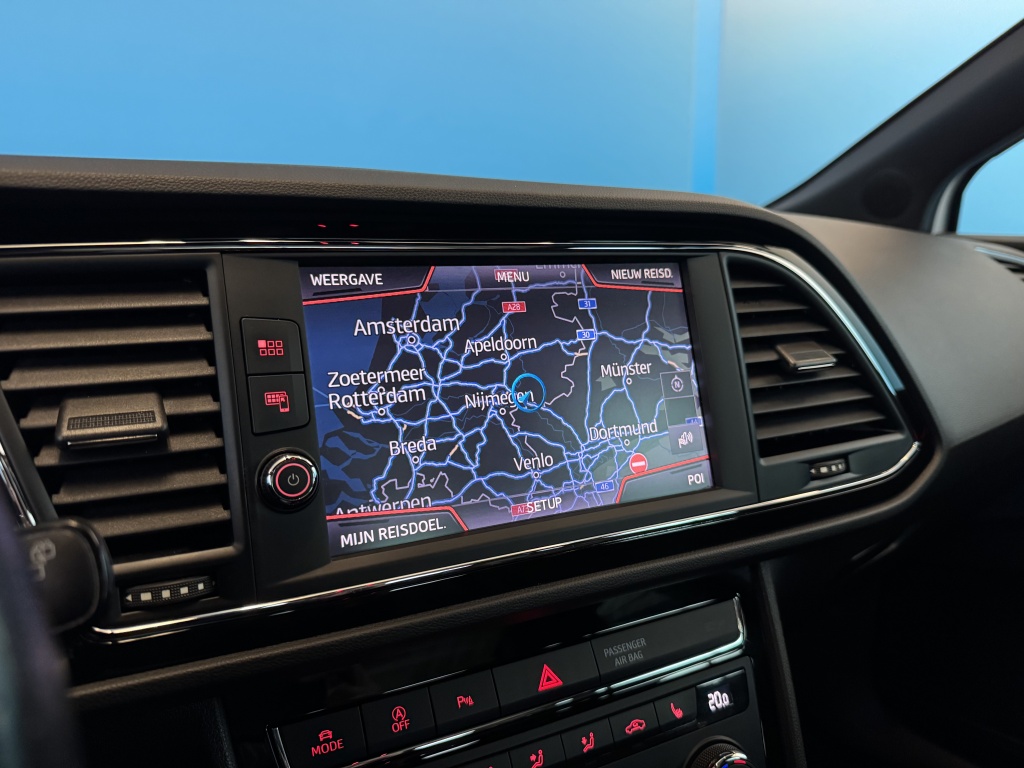 Adaptive cruise control is een comfortabele en veilige optie. Het systeem reguleert de snelheid en houdt automatisch afstand tot uw voorligger. Slimme spraakbesturing herkent gesproken opdrachten en voert ze uit. U rijdt snel, zuinig en zeker naar uw bestemming met het navigatiesysteem. Bij de luxe van deze auto hoort ook automatische airconditioning. Moet uw smartphone ook even tanken? Bijladen kan supersimpel met de draadloze telefoonlader. Ook is de Seat uitgerust met: schakelpaddles aan het stuur, DAB ontvangst, parkeersensoren achter, regensensor, keyless entry en automatisch dimmende spiegels.