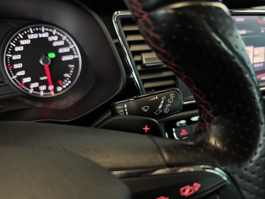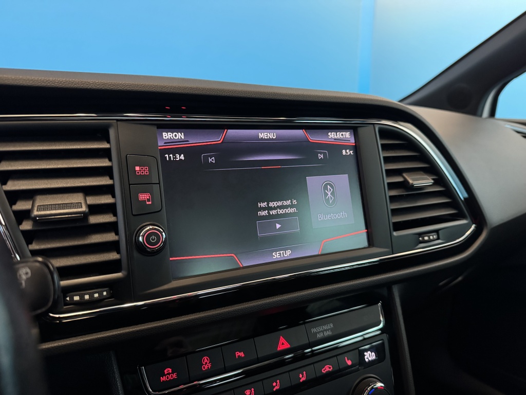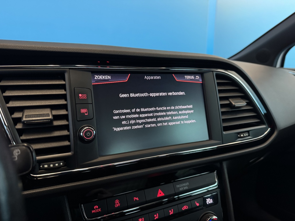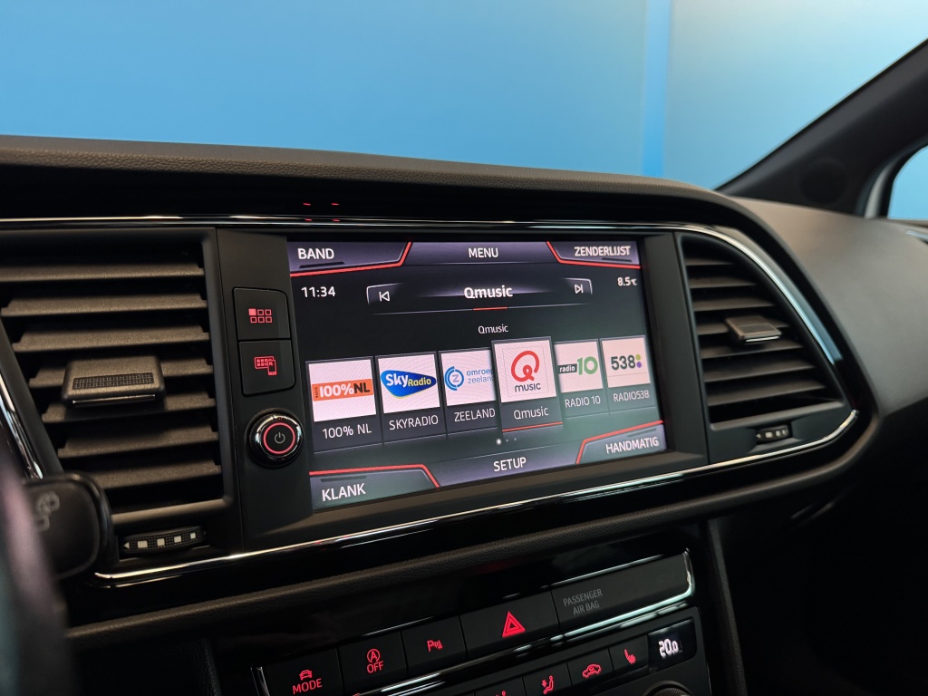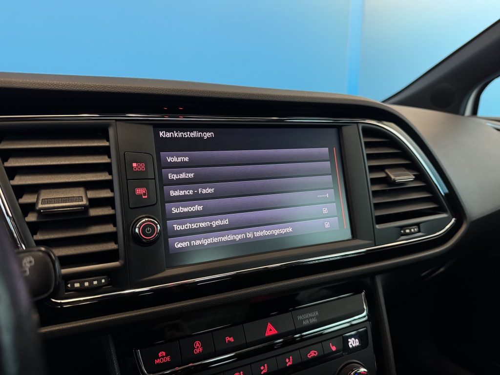 Adaptive cruise control is een comfortabele en veilige optie. Het systeem reguleert de snelheid en houdt automatisch afstand tot uw voorligger. Slimme spraakbesturing herkent gesproken opdrachten en voert ze uit. U rijdt snel, zuinig en zeker naar uw bestemming met het navigatiesysteem. Bij de luxe van deze auto hoort ook automatische airconditioning. Moet uw smartphone ook even tanken? Bijladen kan supersimpel met de draadloze telefoonlader. Ook is de Seat uitgerust met: schakelpaddles aan het stuur, DAB ontvangst, parkeersensoren achter, regensensor, keyless entry en automatisch dimmende spiegels.