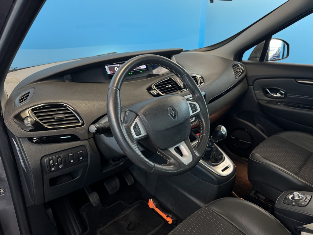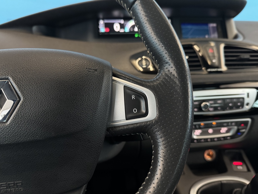 De achteruitrijcamera brengt precies in zicht wat zich achter u bevindt en toont een glashelder beeld op hoge resolutie. Een geluidssignaal waarschuwt hoeveel ruimte u nog heeft. Het navigatiesysteem is uw vertrouwde gids, waarheen de reis ook gaat. Het comfort wordt verhoogd door de aanwezige electronic climate control. Maximumsnelheid? Even de cruise control instellen en u blijft perfect binnen de marges. Klinkt dit bekend? Met een volle boodschappentas bij uw auto aankomen en dan onderin op zoek moeten naar de sleutel. Hoeft niet bij deze Renault Grand Scénic dankzij de keyless entry. Ook is de Renault uitgerust met: automatisch dimmende spiegels, lederen stuur en lederen versnellingspook.