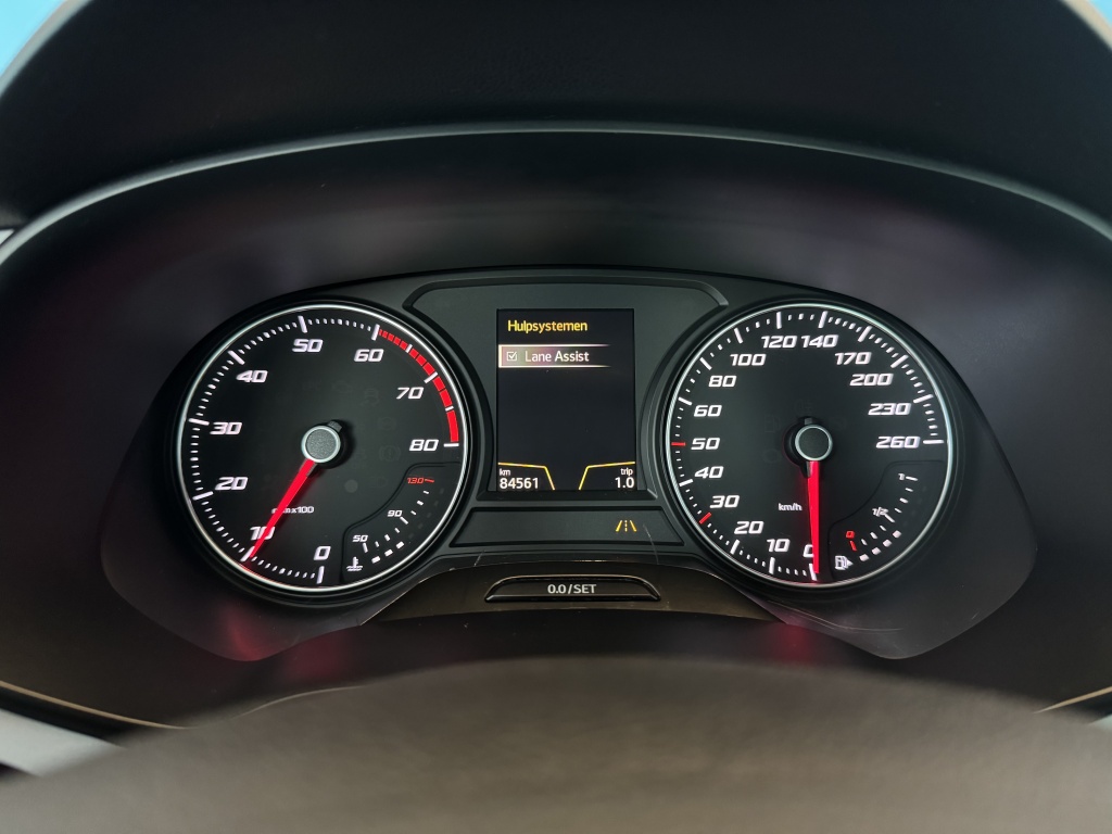 Zoals u mag verwachten van deze Seat Leon is hij uitgerust met een reeks aan actieve veiligheidssystemen. Onderweg zorgt verkeersborddetectie ervoor dat u geen waarschuwingsbord mist. Deze Seat Leon is voorzien van lane assist: een slim en veiligheidverhogend rijhulpsysteem, dat waarschuwt bij onwillekeurig van strook wisselen. In een gevaarlijke situatie is een zo kort mogelijke remweg van levensbelang. De Brake Assist zorgt dat u dan maximaal in de ankers gaat. De veiligheid van deze auto wordt verder verhoogd door hill hold functie en bandenspanningcontrolesysteem.