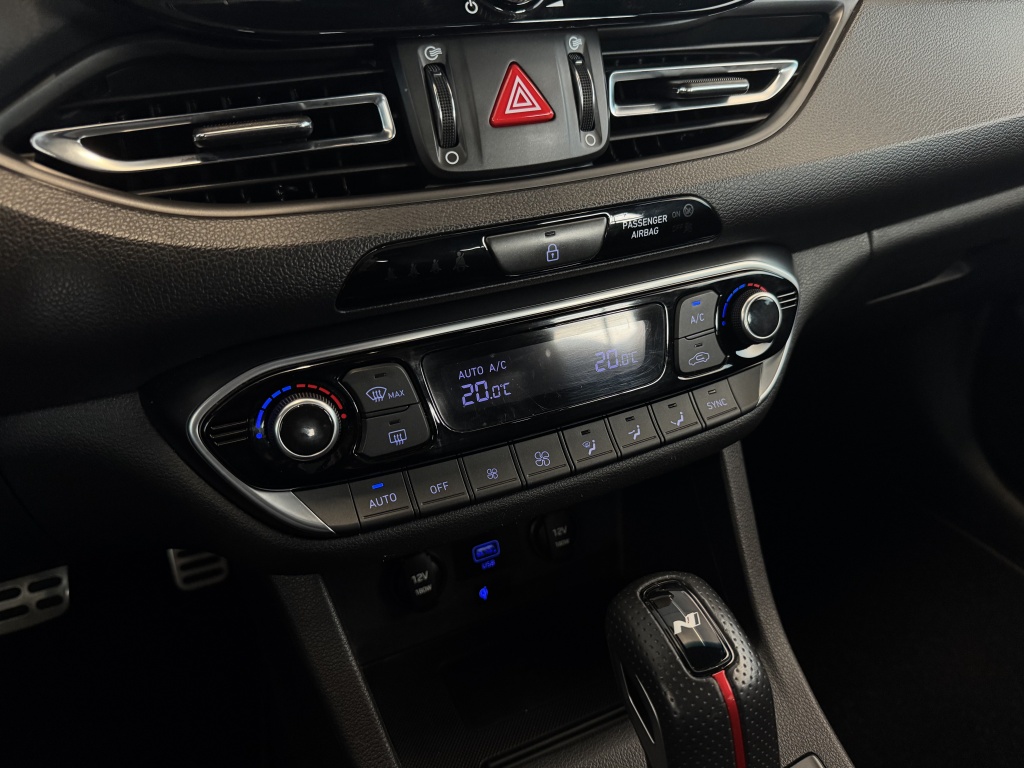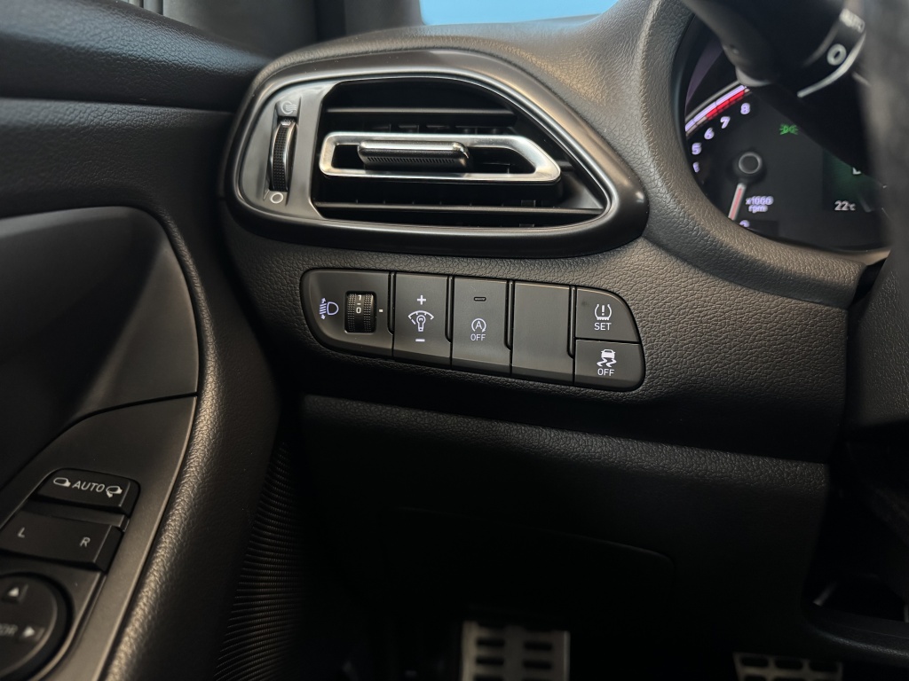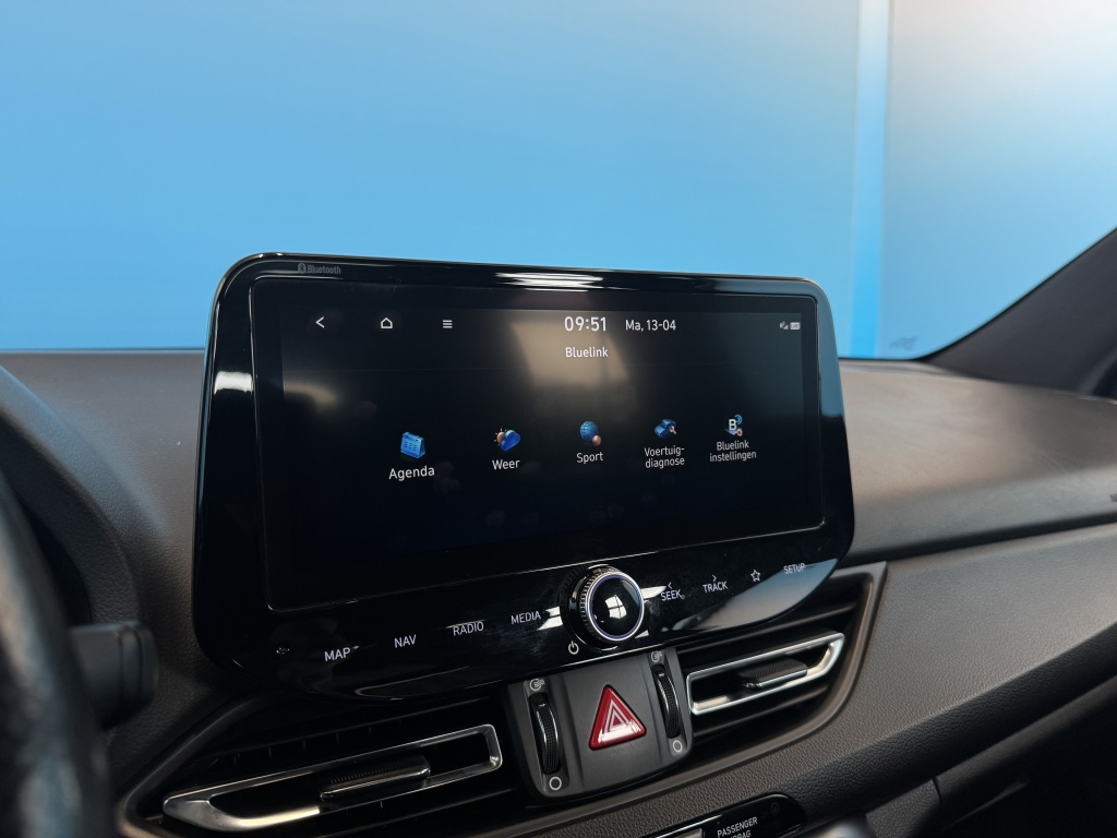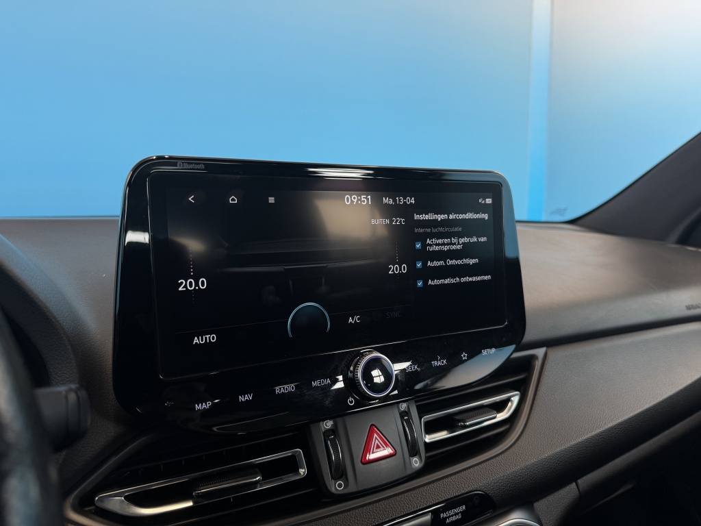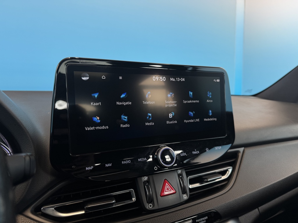 Zoals u mag verwachten van deze Hyundai i30 is hij uitgerust met een reeks aan actieve veiligheidssystemen. Verkeersborddetectie herkent tijdelijke en permanente verkeersborden langs en boven de weg. De sensor van het forward collision warning-systeem registreert permanent de afstand tot voorliggers en grijpt in als een botsing dreigt. Vermoeidheidsherkenning is een systeem dat met verschillende sensoren tekenen van vermoeidheid bij de chauffeur waarneemt. Deze krijgt tijdig een waarschuwing, wat ongelukken kan voorkomen. Verder is deze auto uitgerust met dodehoekdetectie, hill hold functie, Abs - anti blokkeer systeem met brake assistant en bandenspanningcontrolesysteem.